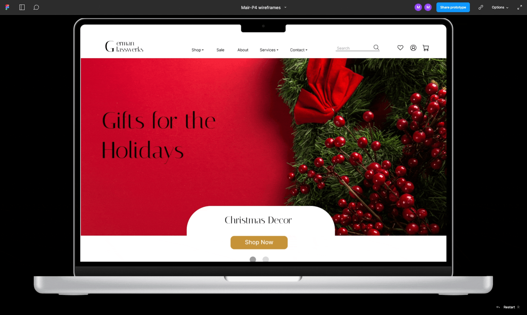 I conducted research with potential users, antique lovers and gift givers. My research showed that customers prefer to have their content split into categories and a lot had mentioned they really want to know the history behind their product. Most people wanted to know they were getting a good deal and that if the product was of good quality. There I introduce you to German Glass Werks 2.0.